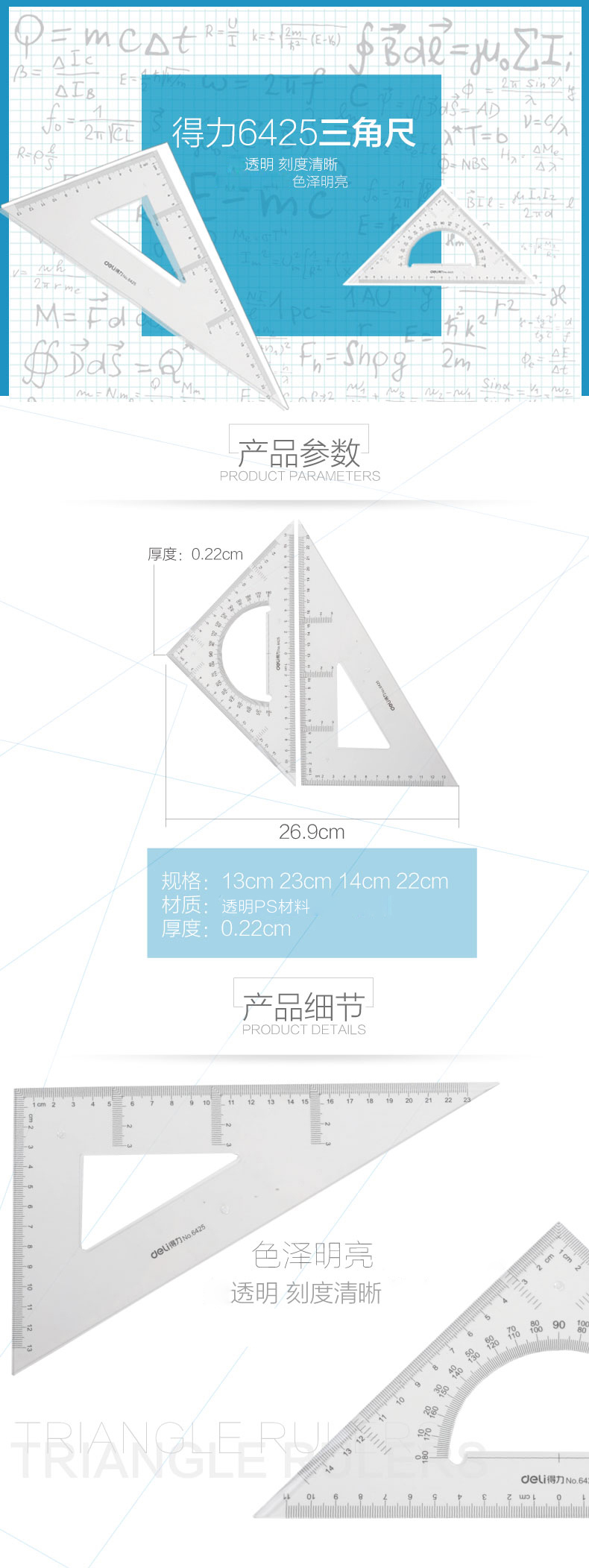 商品名称:得力6425三角尺25cm(套)