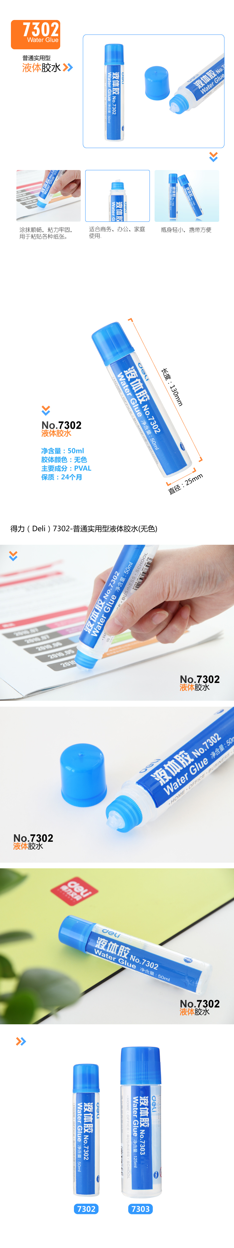 商品名称:得力7302/50ml液体胶(无色)*24支/盒