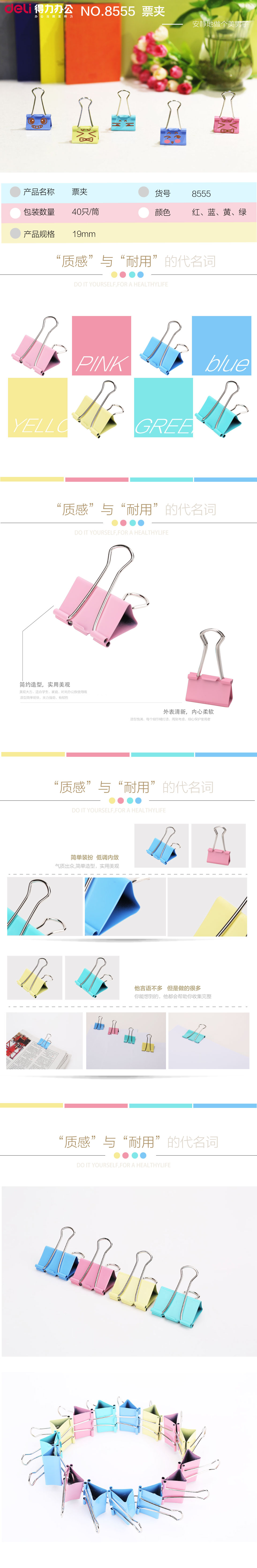 得力8555-5#彩色长尾票夹19mm(筒装)(混)(40只/筒)
