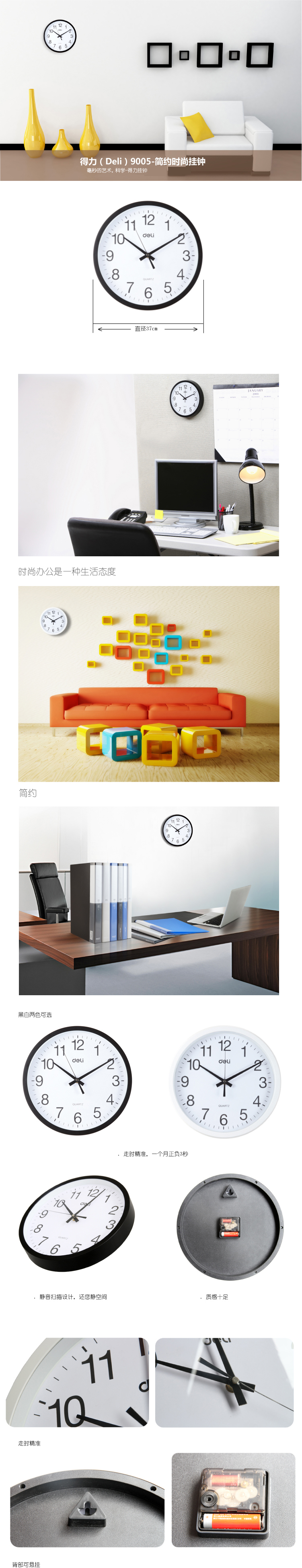 商品名称:得力9005挂钟(黑)(只)30cm(12寸)