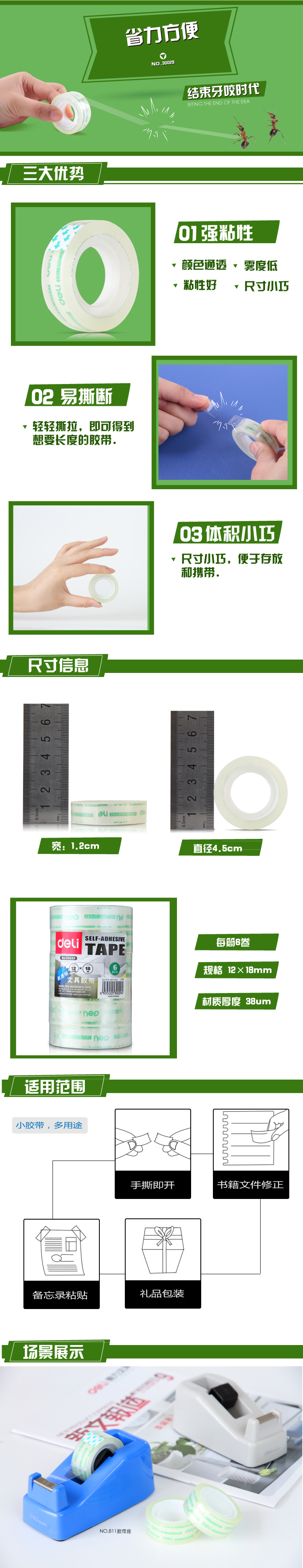 商品名称:得力30029学生胶带12mm*18m*38um(6卷/筒)