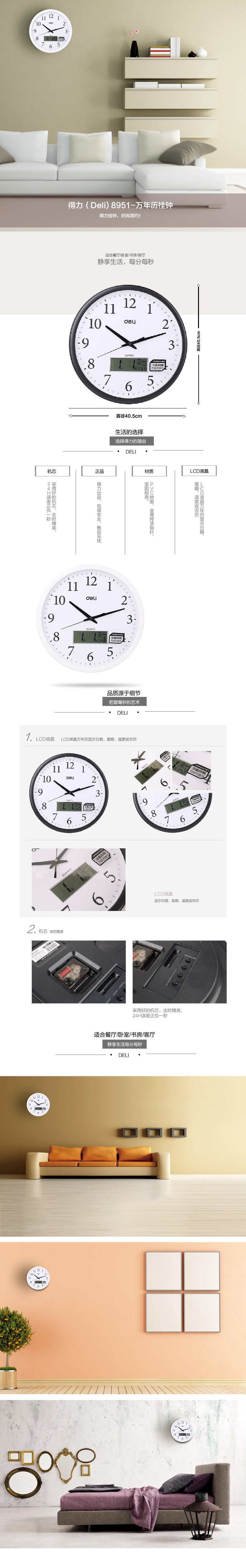 > 得力8951挂钟(白)40.5cm万年历功能(16寸)