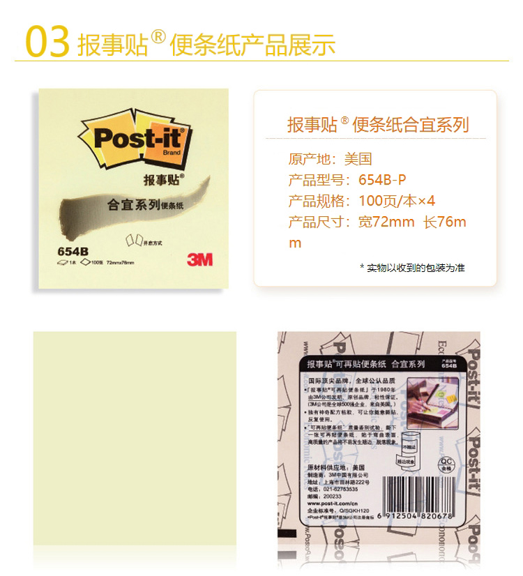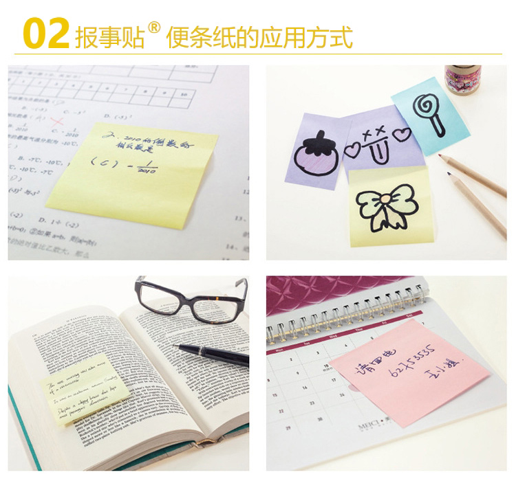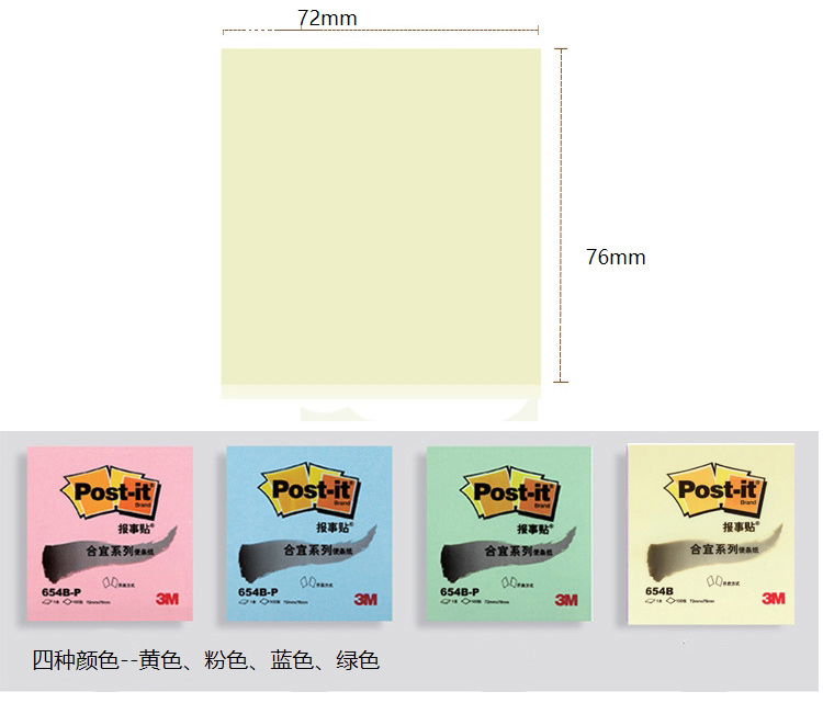 商品名称:3M 便利贴 报事贴/便条纸/便签纸/便签本 合宜系列办公用品 72*76 4色彩色报事贴 654B-4P