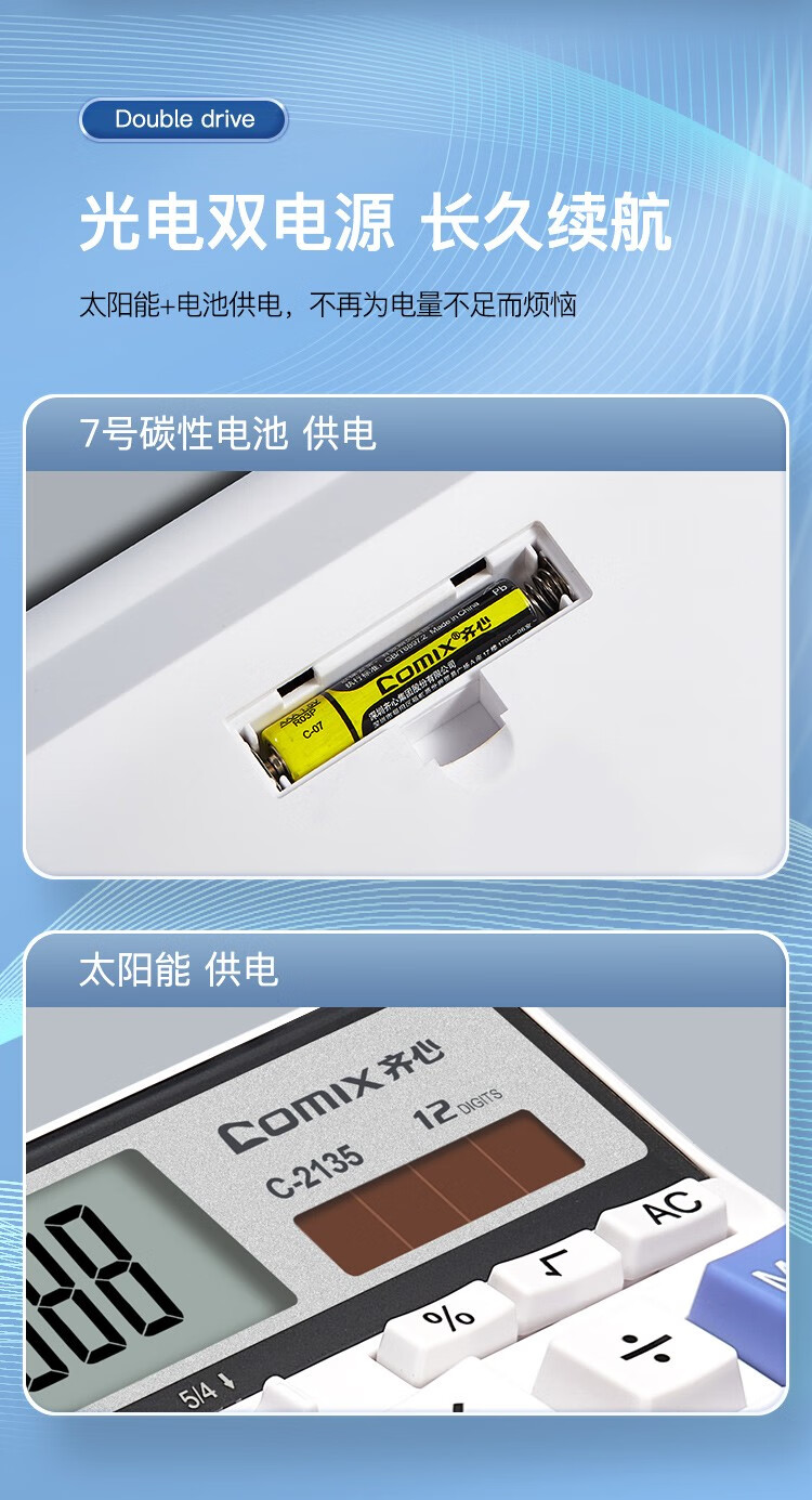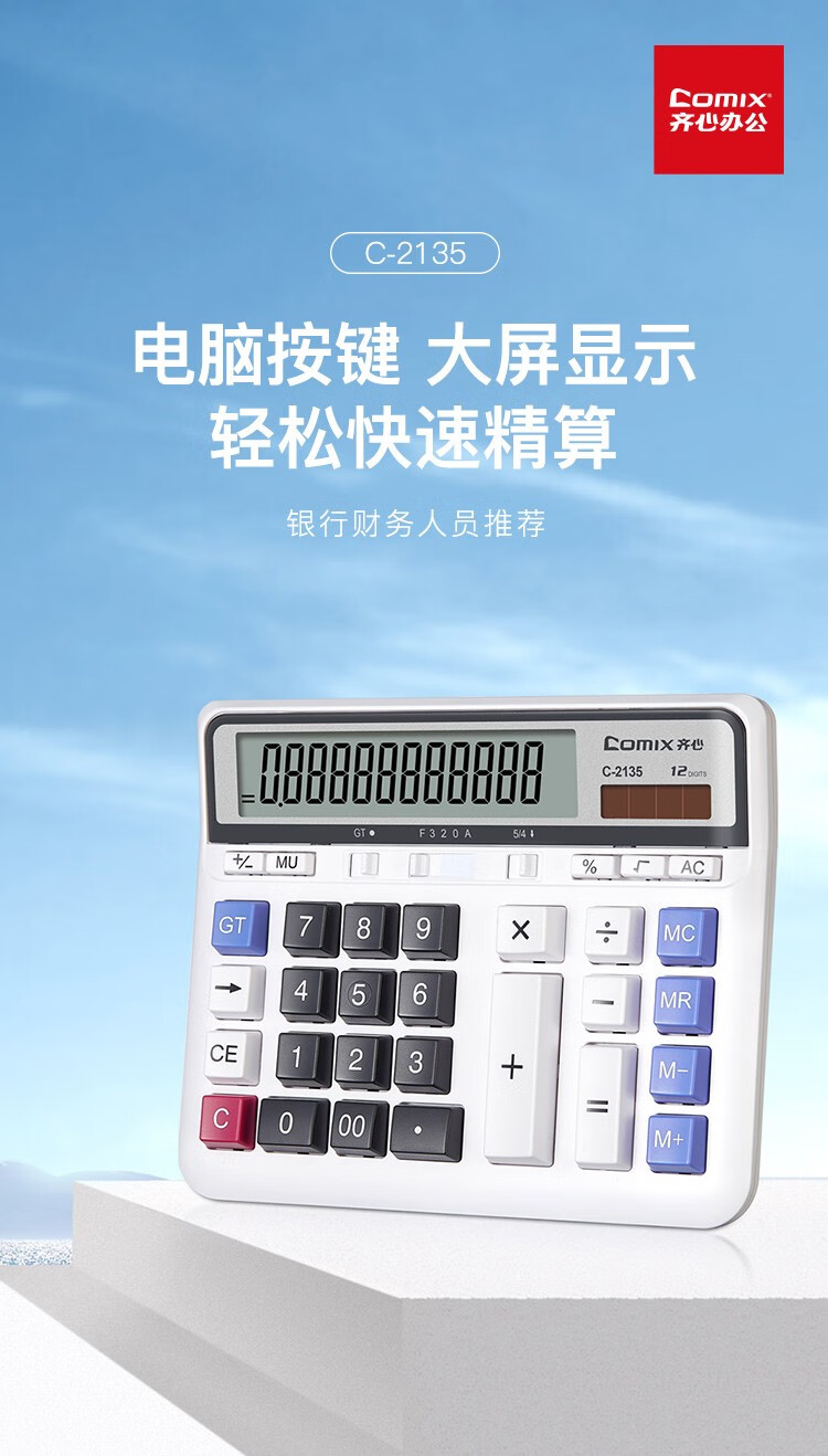 > 齐心(COMIX)C-2135 计算器电脑舒适按键 12位大屏横式桌面计算器