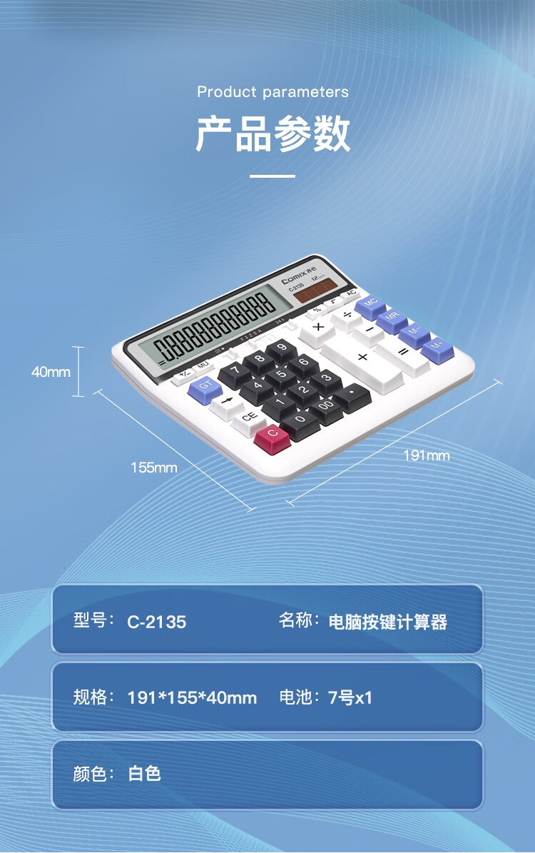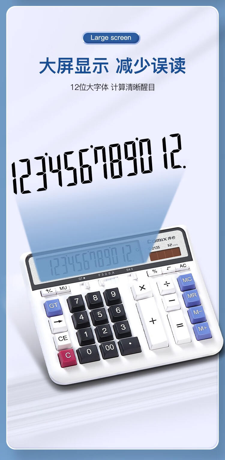 商品名称:齐心(COMIX)C-2135 计算器电脑舒适按键 12位大屏横式桌面计算器