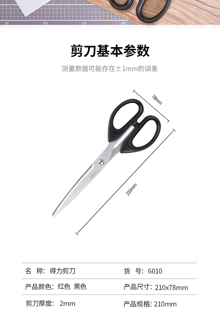 商品名称:得力(deli)210mm办公家用生活剪刀(大号) 1把 办公用品 颜色随机6010