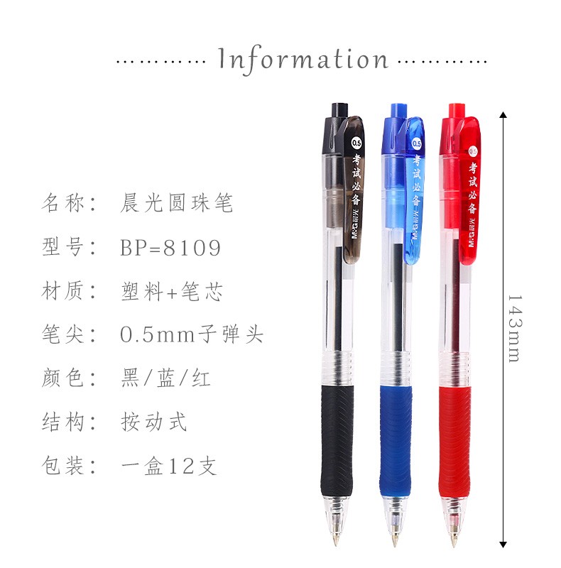 > 晨光(MG) BP-8109/0.5mm按动式黑色圆珠笔12支/盒
