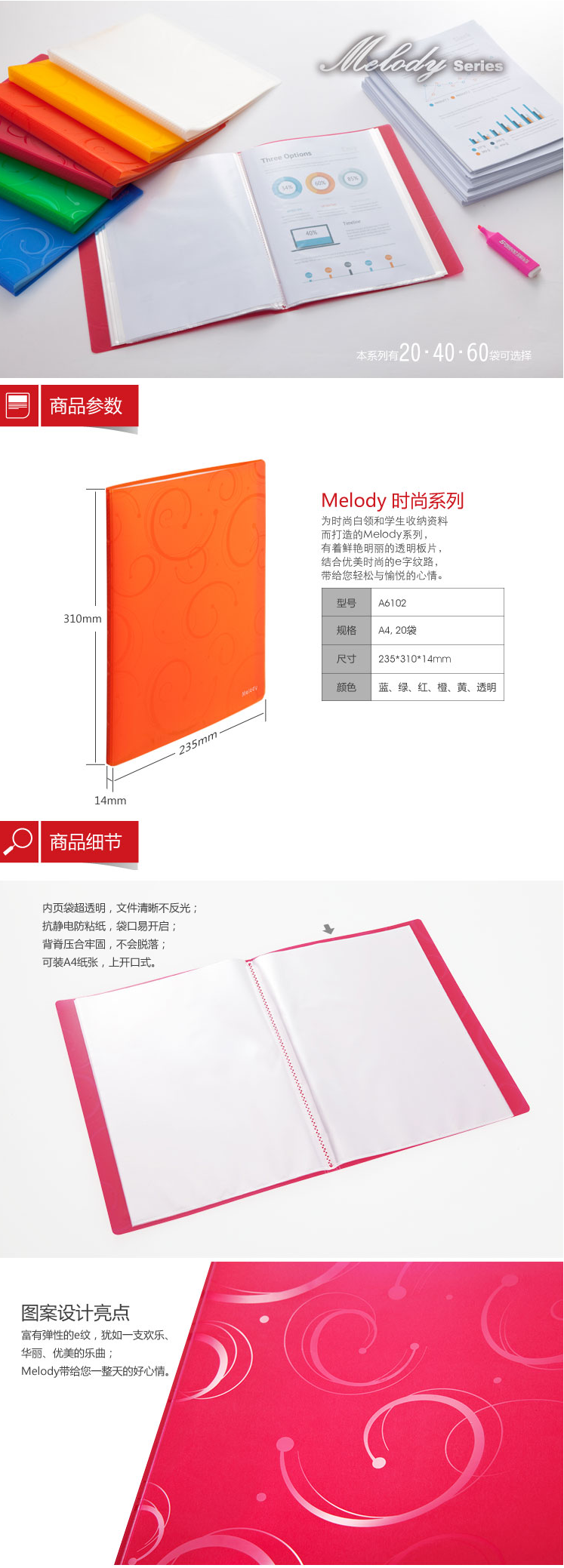 商品名称:齐心 A6102 资料册A4 20页