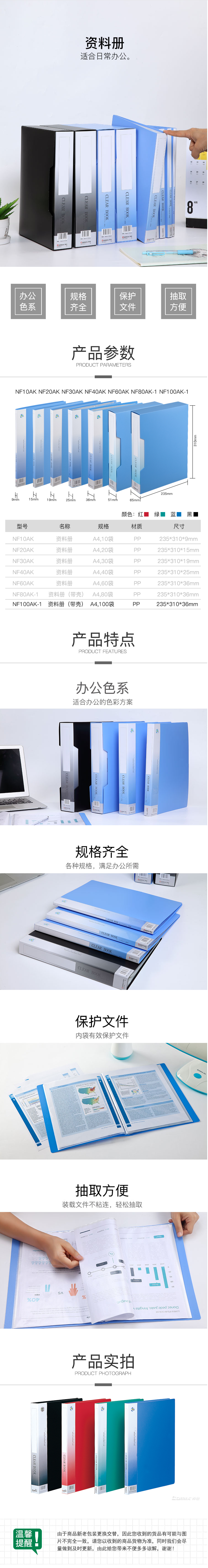 商品名称:齐心 NF100AK-1 办公必备大容量资料册 A4 100袋外壳