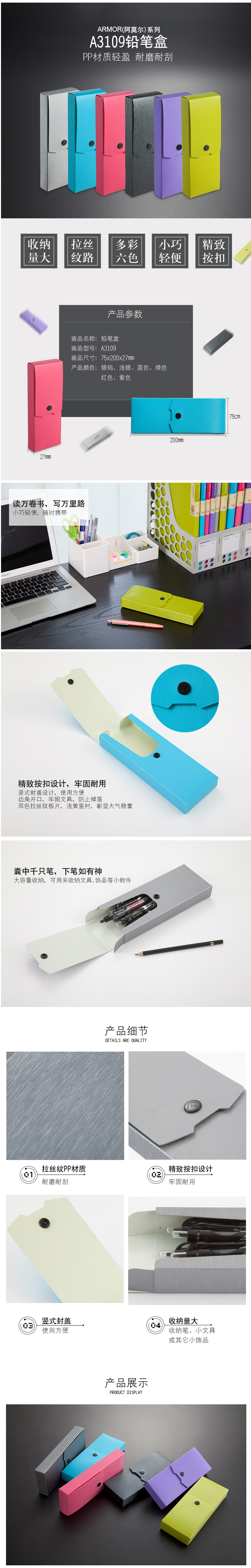 商品名称:齐心 A3109 ARMOR 按扣式笔盒 25mm